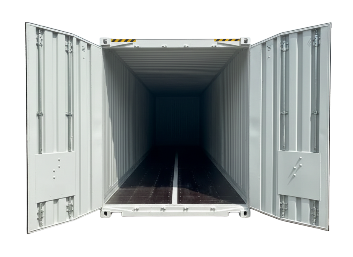 Le conteneur maritime 40 pieds se charge par ses deux grandes portes à l’avant, le passage de portes est de 2,58 m de haut par 2,34 m de large, cette information est importante pour un chargement idéal.